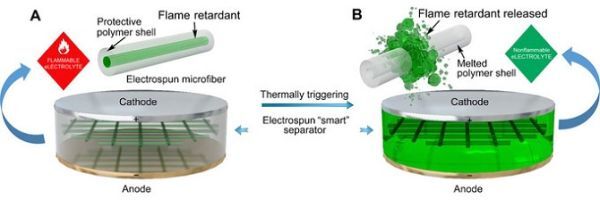 Các nhà nghiên cứu của Stanford đã sử dụng sợi nhựa để giữ điện cực âm và dương xa nhau, cũng như phủ lên chúng một hợp chất gọi là triphenyl phosphate, có thuộc tính chống cháy. Nếu pin đã đạt đến nhiệt độ 150 độ C, hợp chất triphenyl phosphate sẽ được giải phóng. Nhóm nghiên cứu cho rằng phương pháp này rất hữu hiệu để đối phó với hiện tượng pin quá nhiệt và nó có khả năng dập tắt ngọn lửa chỉ trong vòng 0,4 giây.
